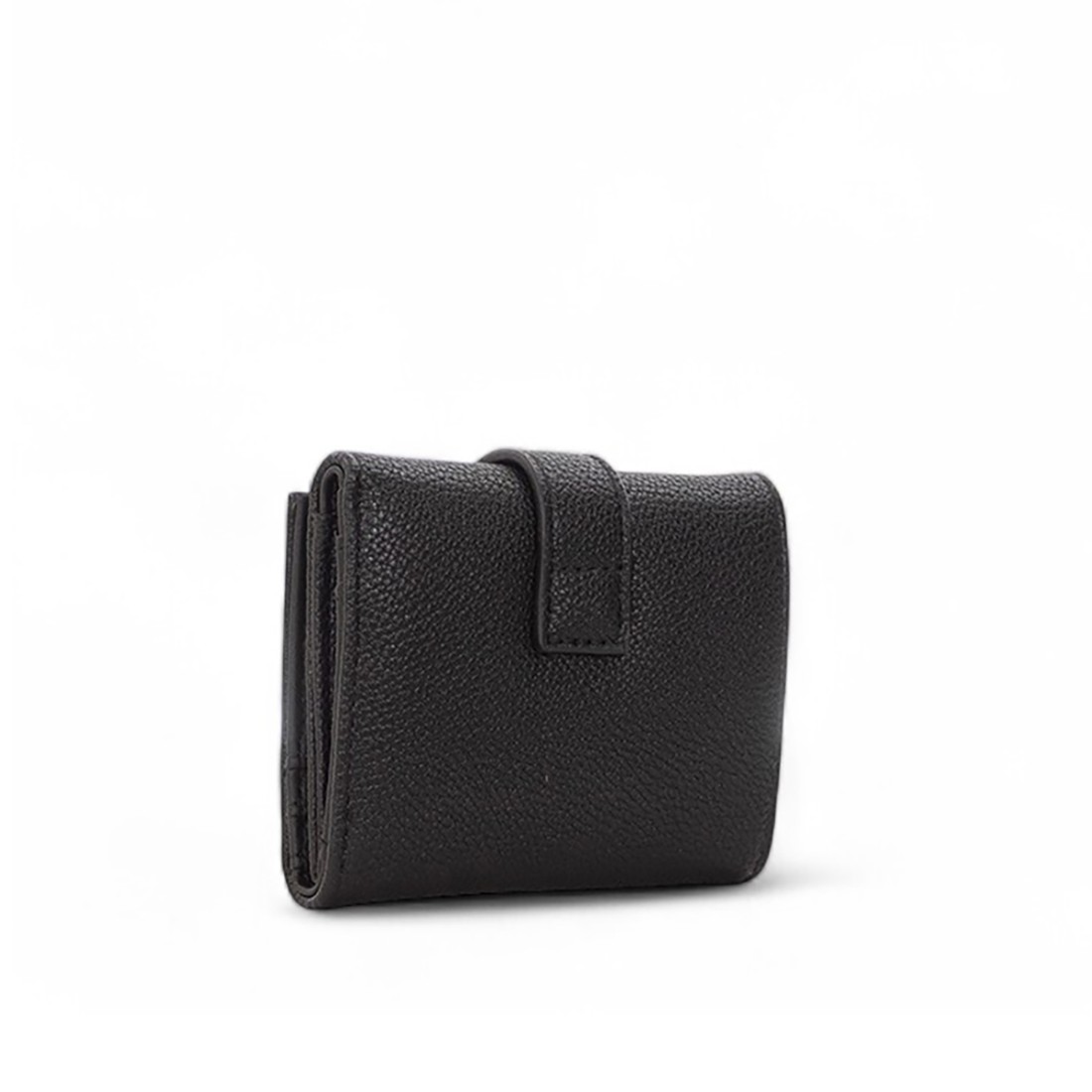 Portafoglio Laurel in simil pelle dal design elegante e compatto. Impreziosito dalla scritta logo in metallo frontale, presenta una chiusura sicura con bottone a pressione. L’interno, foderato in tessuto, offre spazio organizzato per carte e banconote. Realizzato in 100% poliuretano. Dimensioni: 11 x 8 x 2 cm.