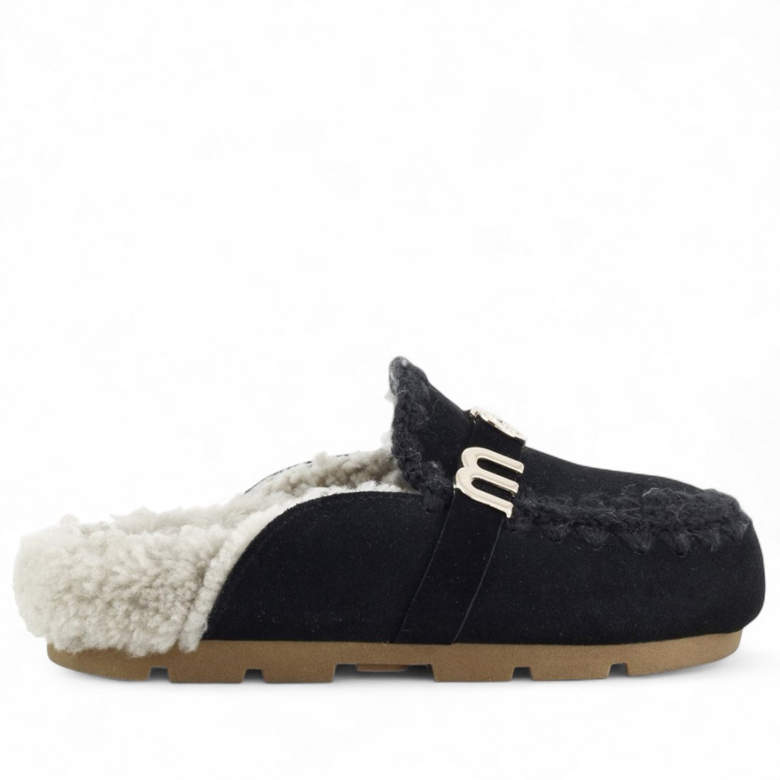 Scopri i sabot MOU Winter Bio Slide Logo in pelle scamosciata nera con cuciture all’uncinetto e interno in morbido montone double-face. Il logo in metallo sulla tomaia e la suola in gomma assicurano comfort e stile autentico per un look ricercato e naturale, perfetto per ogni stagione.Il nostro servizio clienti è a tua disposizione dal Lunedì al Sabato dalle 10:00 alle 19:30.