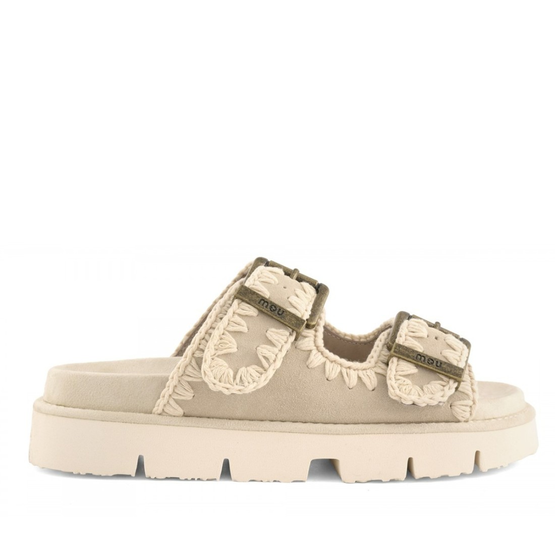 Scopri il sandalo MOU in pelle scamosciata bianco gesso, dal design raffinato e confortevole. La tomaia a doppia fascia con fibbie regolabili assicura una calzata perfetta, mentre le cuciture artigianali all'uncinetto aggiungono un tocco unico. Completa il look la suola in gomma, ideale per un'ottima aderenza. Perfetto per chi cerca stile e qualità in un’unica scarpa.Il nostro servizio clienti è a tua disposizione dal Lunedì al Sabato dalle 10:00 alle 19:30.