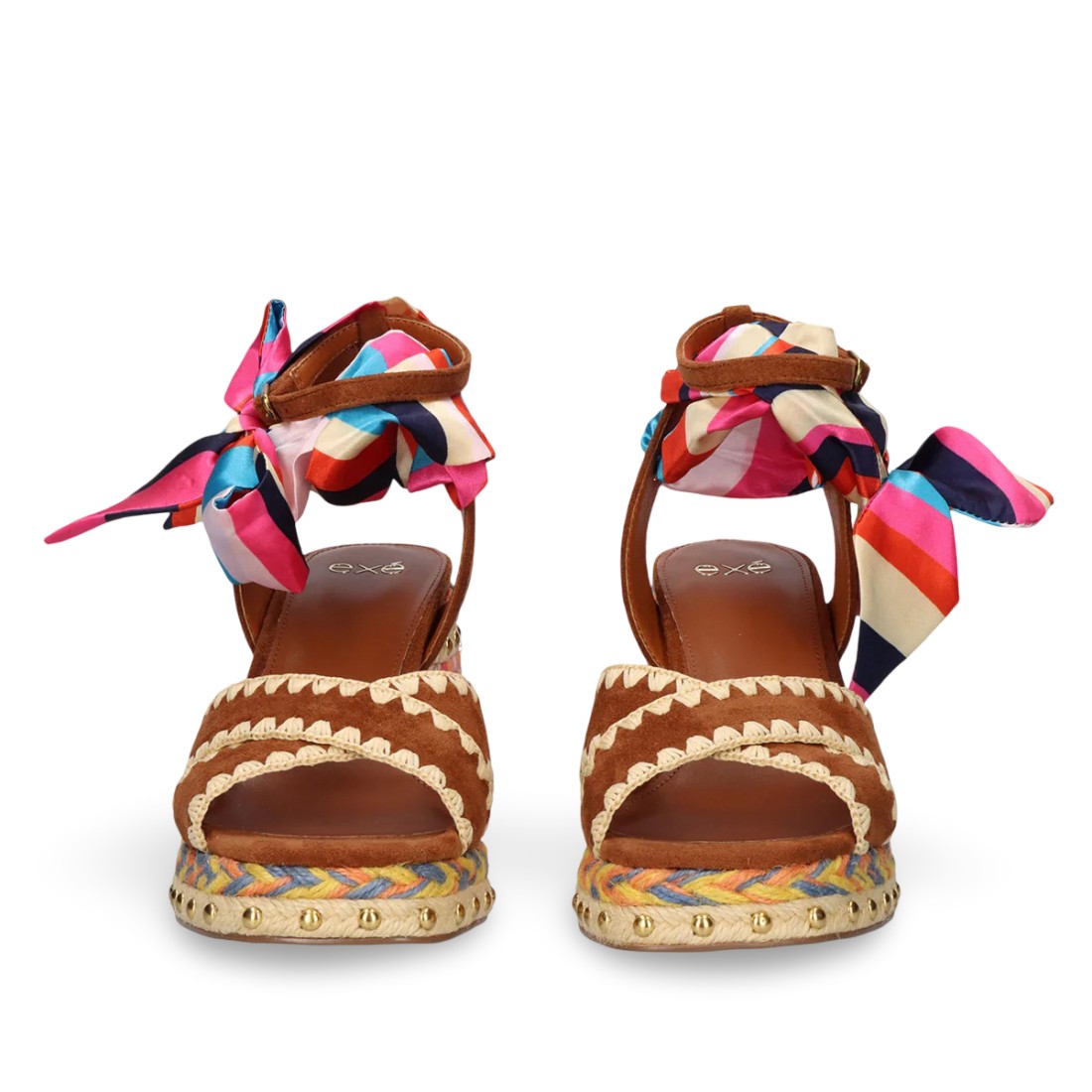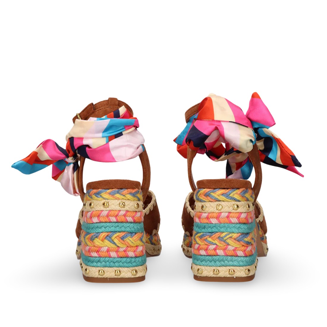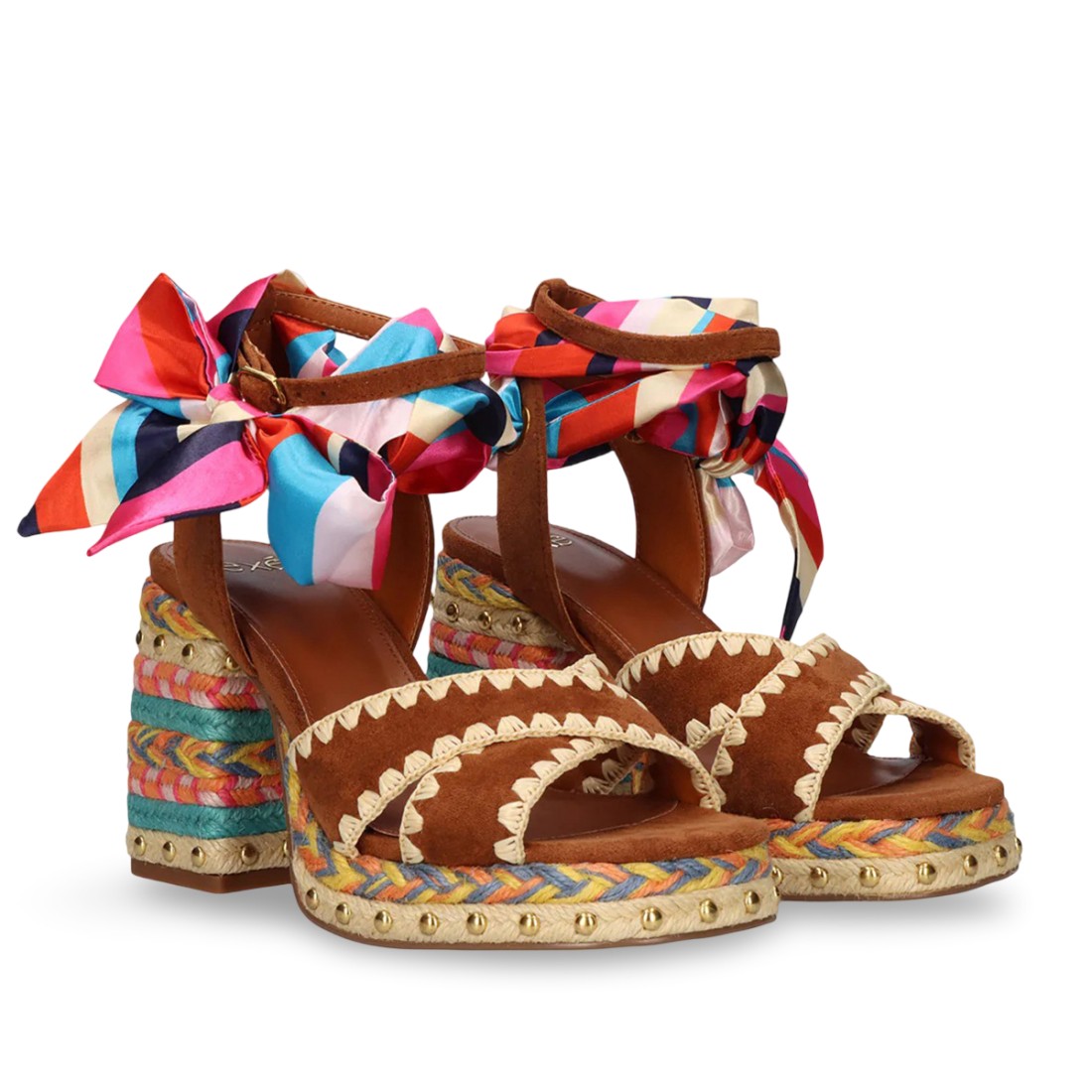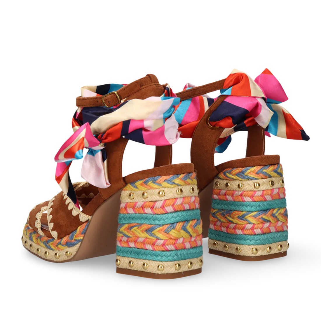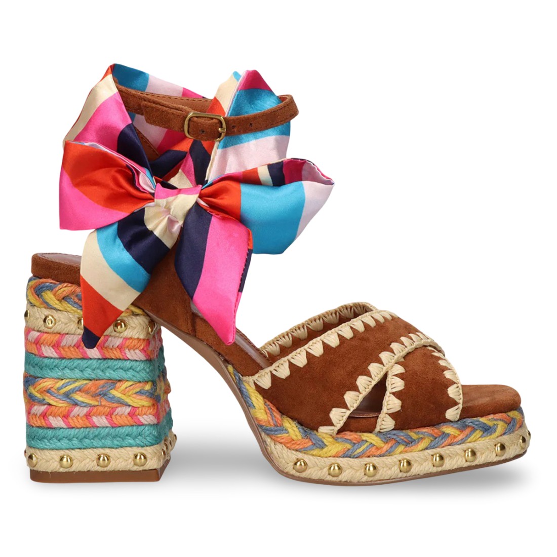 Romantici e versatili, questi sandali multicolore conquistano al primo sguardo. Il dettaglio distintivo è la sciarpina integrata da annodare alla caviglia, che slancia la gamba e aggiunge movimento ad ogni passo. Perfetti per completare con stile e personalità i look da occasione. Tacco 10 cm. Tomaia sintetica, soletta in pelle, suola sintetica, chiusura con fibbia.