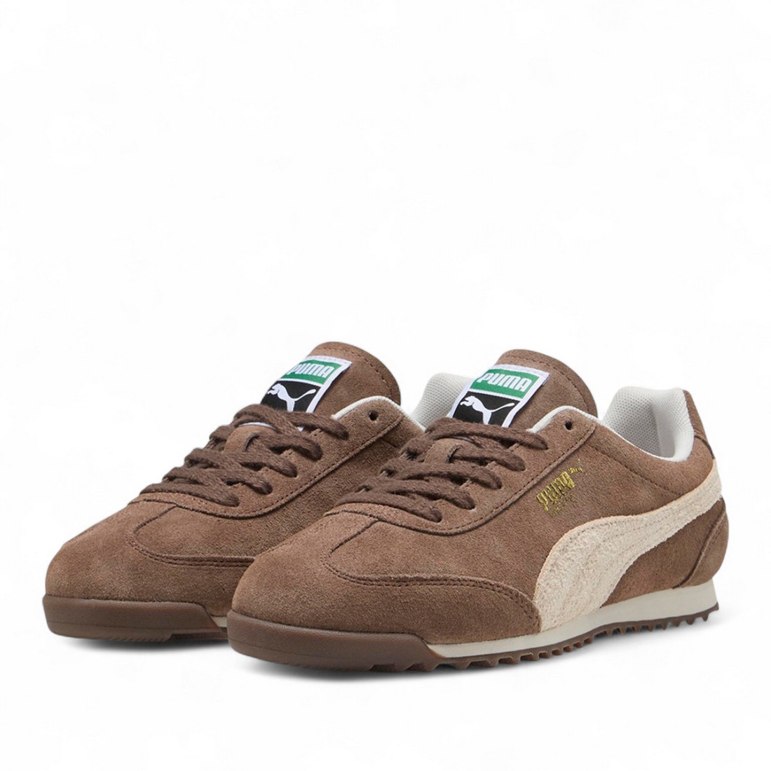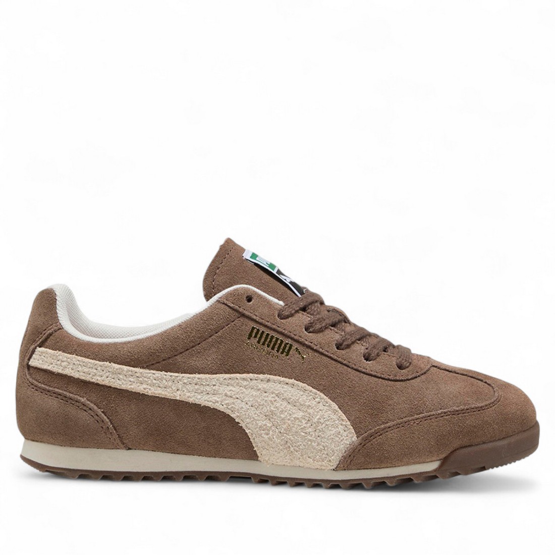 Scopri lo stile retrò con queste sneakers iconiche. Realizzate con tomaia in camoscio marrone e dettagli in camoscio beige, presentano l’inconfondibile Formstrip in suede e il logo PUMA a stampa foil. Il plantare in mesh traspirante e la linguetta in morbido suede garantiscono comfort e un autentico look vintage, perfetto per distinguerti ad ogni passo.