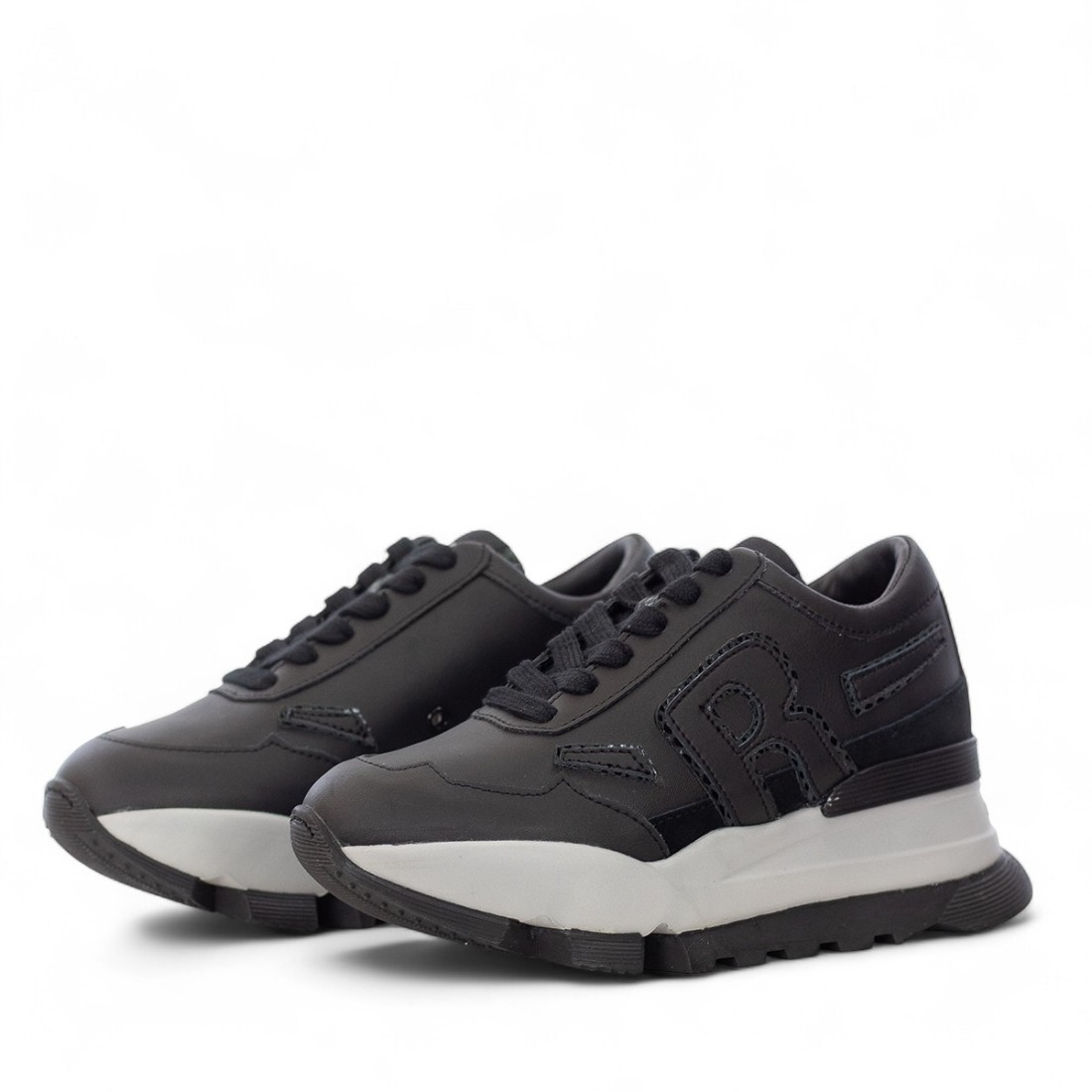Sneakers donna Rucoline in pelle nera, con dettagli in camoscio tono su tono sulla tomaia per un tocco elegante. Il fondo alto 7,5 cm valorizza la silhouette, mentre fodera e suola interna in tessuto ed ecopelle offrono comfort duraturo. La suola in gomma garantisce stabilità e resistenza. Un modello raffinato e versatile, ideale per arricchire con stile ogni tuo look.