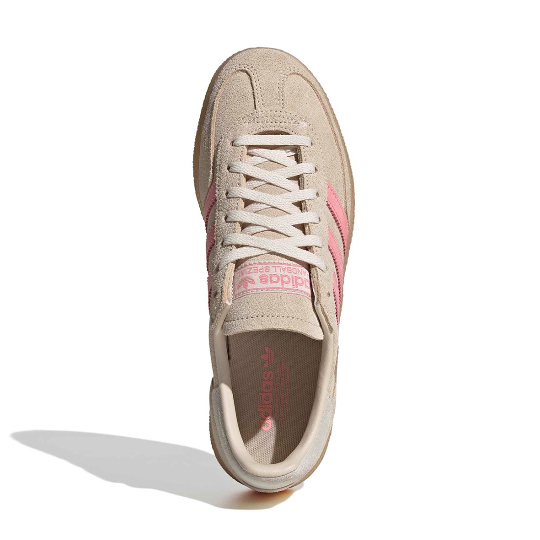 Le adidas Handball Spezial sono un’icona senza tempo nata nel 1979 per la pallamano indoor e diventata negli anni un must dello streetwear. Questa versione presenta una tomaia in morbida pelle scamosciata beige, arricchita dalle 3 strisce seghettate rosa e dal logo Trefoil con scritta Spezial sulla linguetta. La classica suola in gomma garantisce grip e comfort, mentre la fodera sintetica assicura una calzata pratica per tutti i giorni.