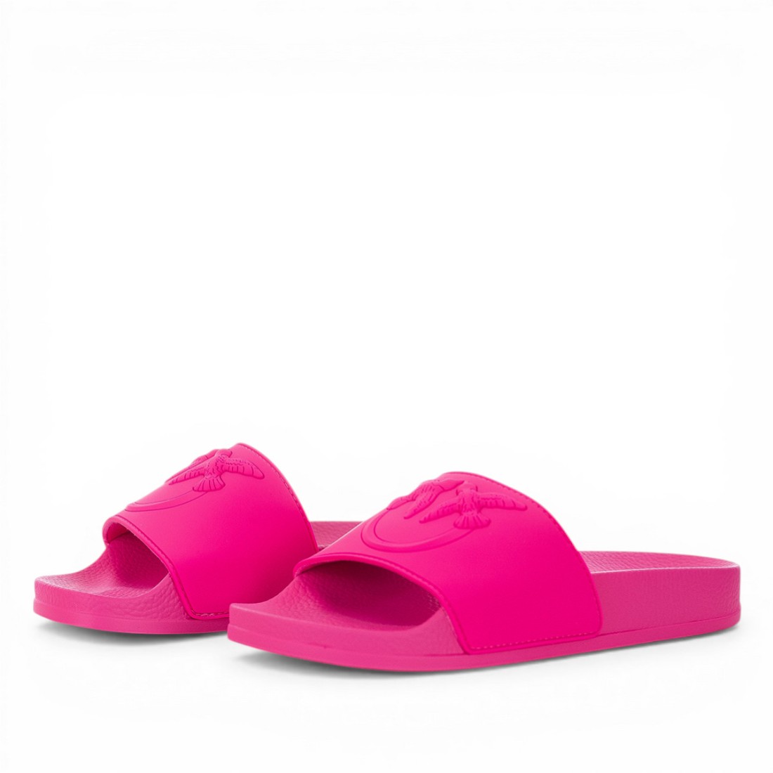Ciabatta Pinko in gomma rosa fluo, pratica e dallo stile distintivo. La tomaia è impreziosita dall’iconico logo Love Birds in rilievo, per un tocco riconoscibile. Leggera e confortevole, è perfetta per il tempo libero e le giornate estive. Fondo in gomma resistente per una calzata stabile.