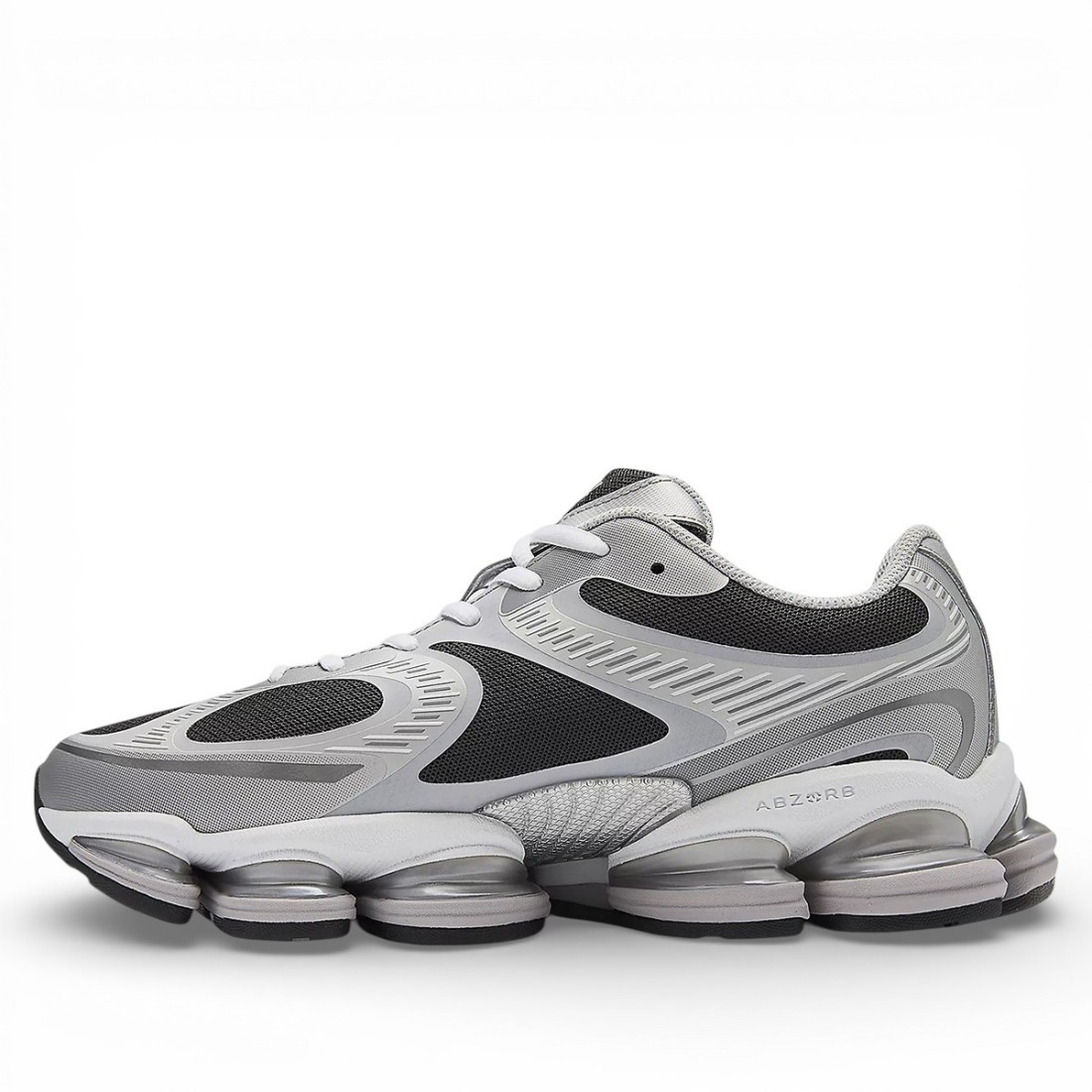 Le ABZORB 2000 reinventano l’estetica del running anni 2000 con un approccio moderno e sperimentale. La suola ABZORB a lunghezza integrale unisce ammortizzazione ABZORB e pod ABZORB SBS per comfort e reattività, mentre la struttura segmentata con Stability Web migliora il supporto. Intersuola sagomata e logo “N” stampato completano il look. Tomaia in mesh nero con sovrastampe e dettagli argento.