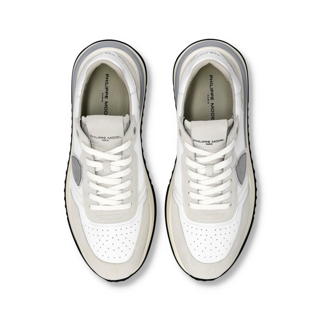 Ispirata alle iconiche running anni ’70, la Tropez 2.1 di Philippe Model unisce fascino vintage e linee contemporanee. La costruzione Strobel, con tomaia e suola cucite direttamente, assicura comfort, flessibilità e una calzata che si adatta al piede. La pelle bianca è valorizzata da inserti in suede grigio a contrasto, mentre la suola in gomma con dettaglio tridimensionale completa il design con un tocco distintivo.