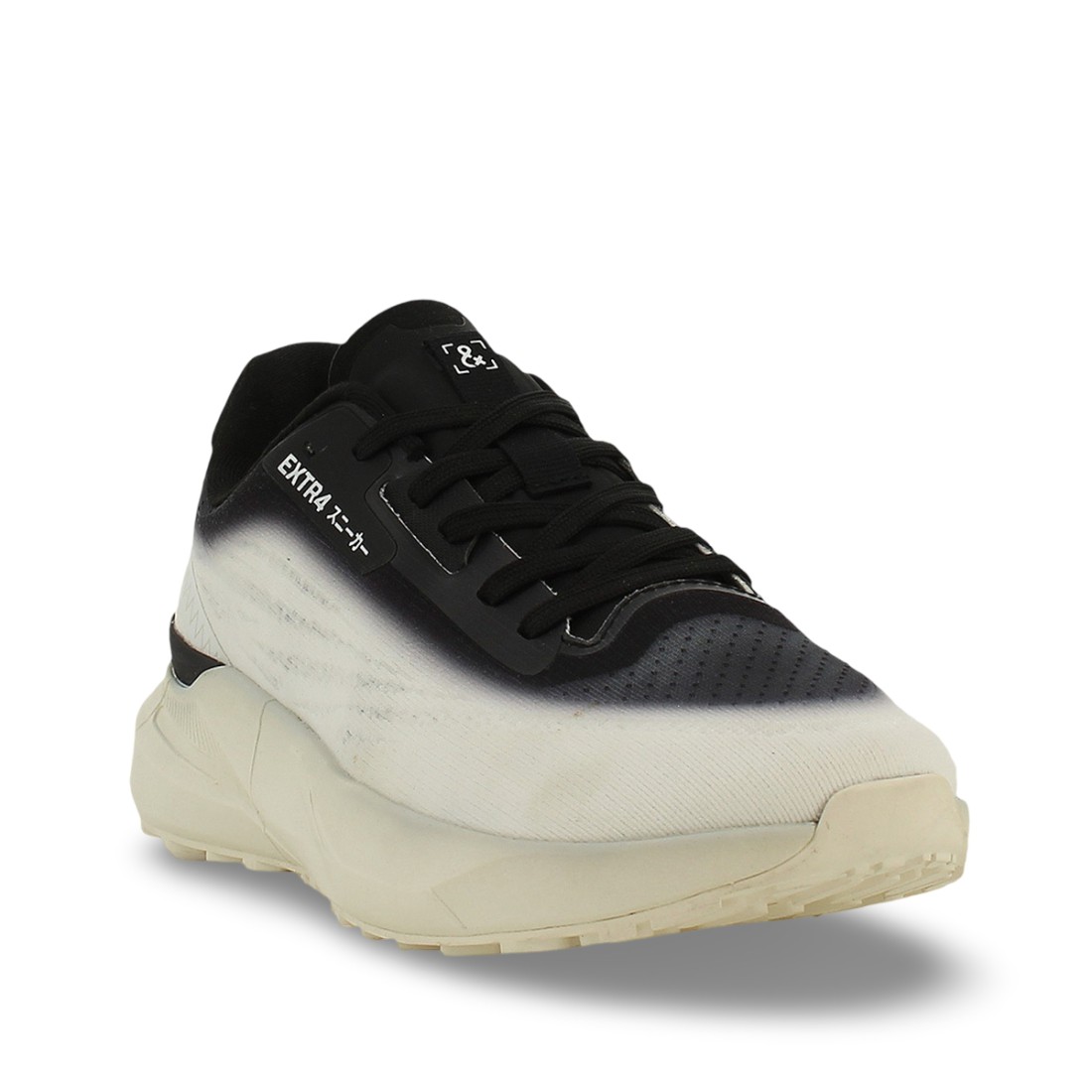 Sneakers Kaizen 4.01 con tomaia in tessuto Jacquard sfumato bianco e nero, leggera e traspirante ma ben strutturata. I pattern grafici donano un look dinamico e moderno. Collarino con imbottitura soft per un comfort avvolgente. Sottopiede Rapid-Tech con microsfere in EVA e schiuma per un’ammortizzazione efficace. Suola con tassellatura multidirezionale, ideale in città e su terreni più irregolari.