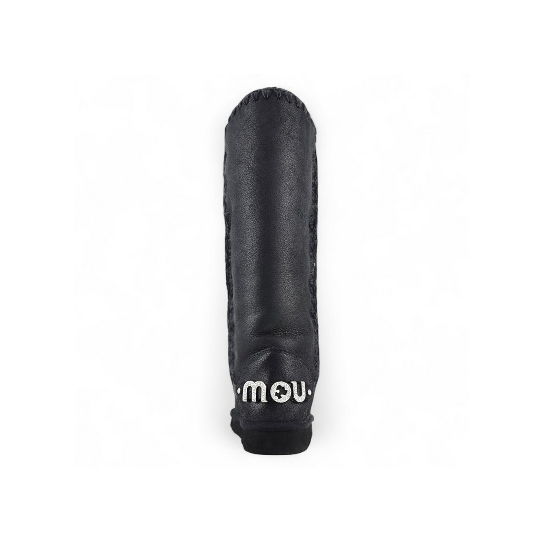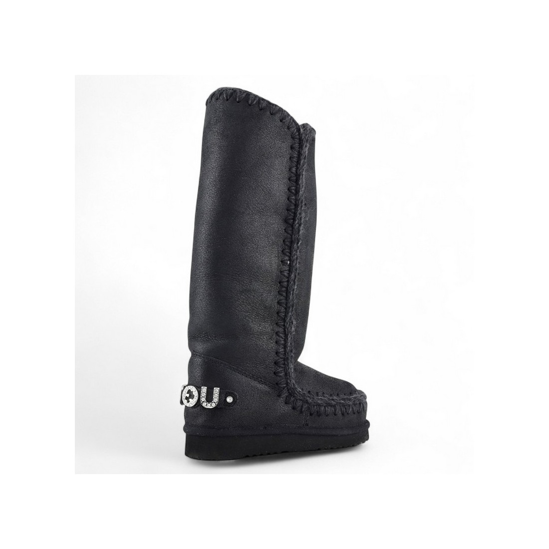 Stivale MOU Eskimo 40 Rhinestones Logo in pelle craccata nera con cuciture all’uncinetto e logo Mou in metallo impreziosito da strass sul retro. L’interno in morbido montone double-face offre comfort e calore in ogni stagione. Suola in gomma resistente, perfetta per un look distintivo e raffinato da indossare ogni giorno.