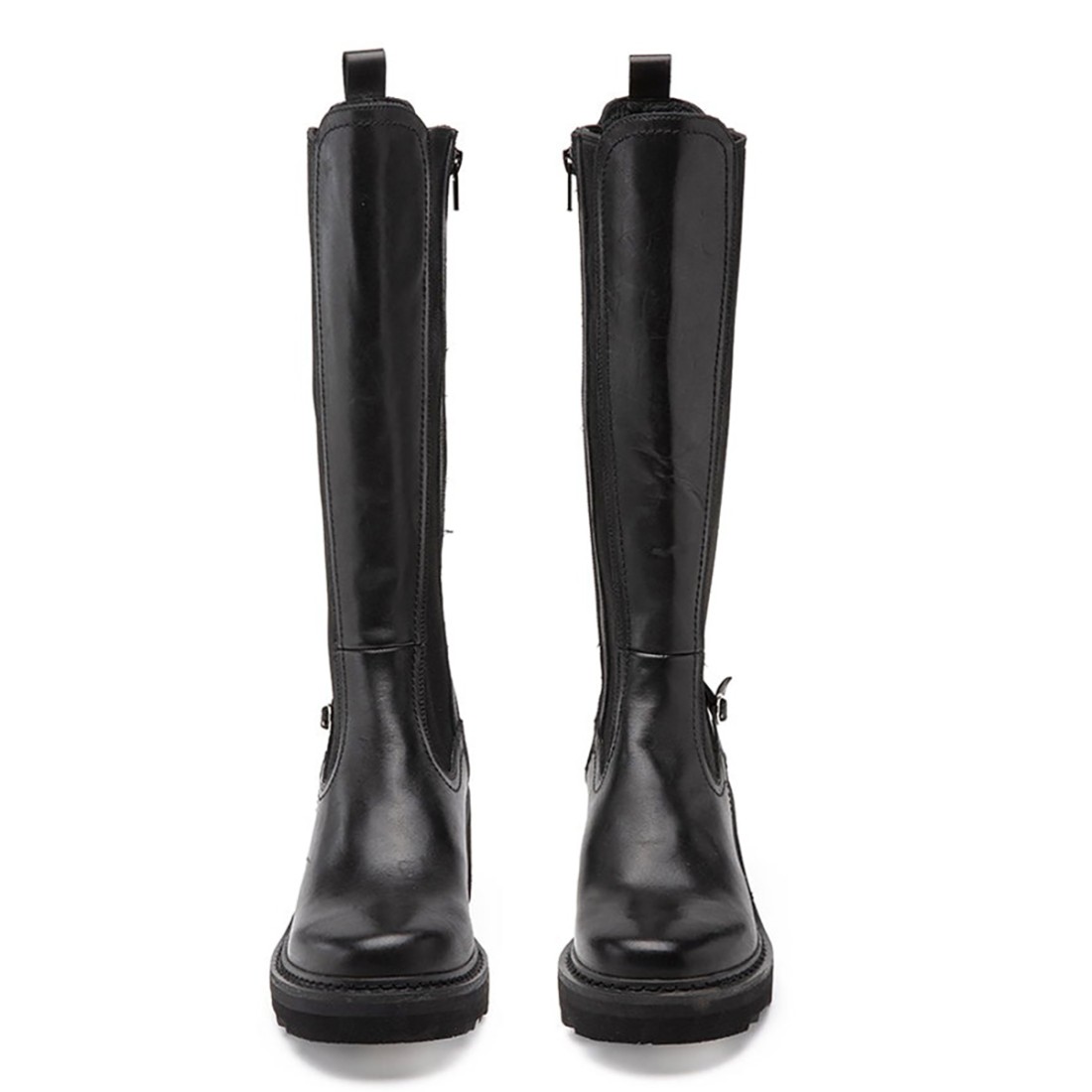 Stivale CULT dalla personalità decisa: pelle nera, suola zigrinata e tacco chunky da 5 cm per un look urban-chic. Il cinturino con fibbia argentata e la placca metallica sul tallone donano grinta e stile riconoscibile. Perfetto per chi ama distinguersi con outfit edgy, unisce robustezza e design contemporaneo in un must-have della linea GRACE.Il nostro servizio clienti è a tua disposizione dal Lunedì al Sabato dalle 10:00 alle 19:30.