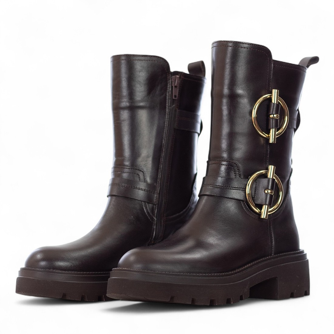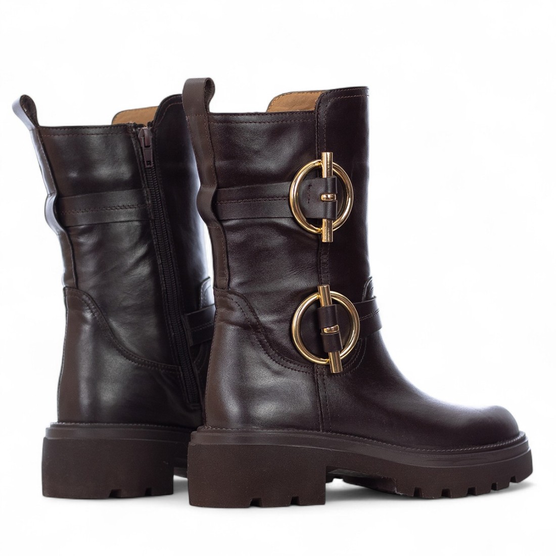 Stivali ALBANO in pelle marrone dal carattere deciso e raffinato. Il tacco di circa 55 mm offre comfort e stile, mentre i cinturini con dettagli dorati aggiungono un tocco glamour. La zip laterale garantisce una calzata pratica. Fodera e soletta interna in pelle e tessuto per un comfort ideale, fondo in gomma per una camminata sicura. Perfetti per un look elegante e originale.Il nostro servizio clienti è a tua disposizione dal Lunedì al Sabato dalle 10:00 alle 19:30.