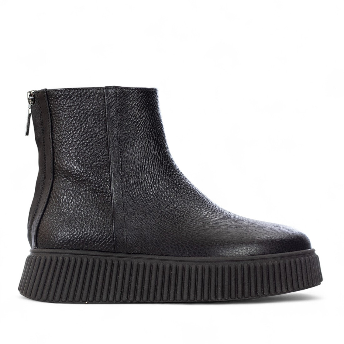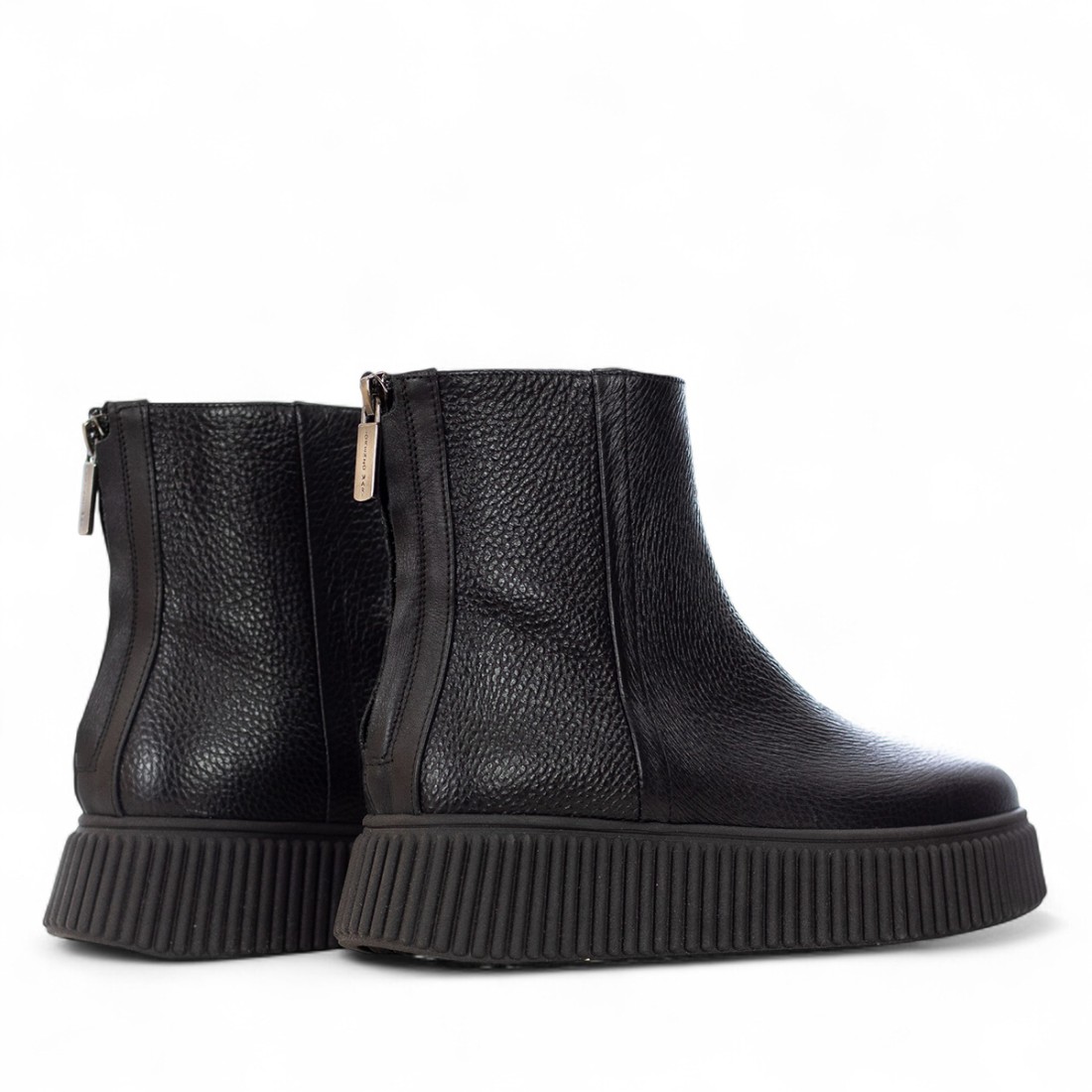 Tronchetto da donna Lorenzo Mari in pelle martellata nera, dal carattere deciso e raffinato. Il design moderno e il fondo di circa 45 mm donano un tocco di originalità a ogni outfit. Pratiche grazie alla zip sul retro, presentano fodera e soletta interna in pelle per un comfort superiore. Il fondo in gomma assicura stabilità e resistenza, perfette per uno stile elegante e contemporaneo.Il nostro servizio clienti è a tua disposizione dal Lunedì al Sabato dalle 10:00 alle 19:30.