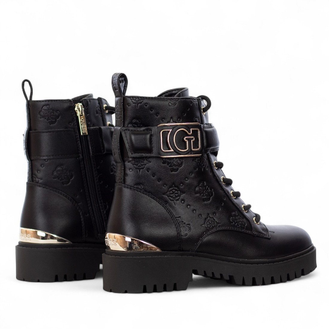 Tronchetto Guess in ecopelle nera con stampa monogramma sui lati. Fodera e suola interna in tessuto ed ecopelle per comfort, comoda zip laterale e tacco alto di circa 40 mm. Fondo in gomma antiscivolo. Eleganza e stile senza rinunciare alla comodità.Il nostro servizio clienti è a tua disposizione dal Lunedì al Sabato dalle 10:00 alle 19:30.