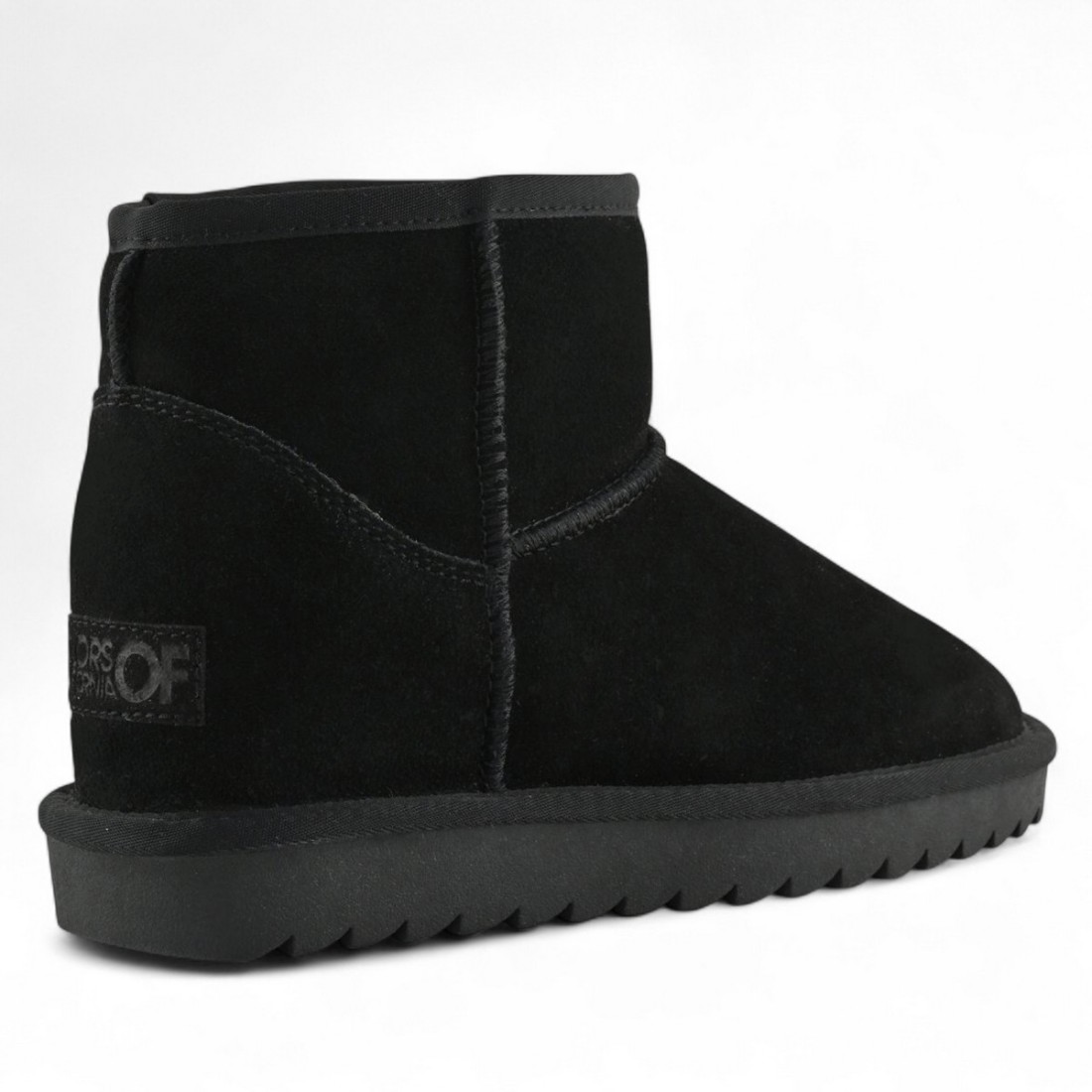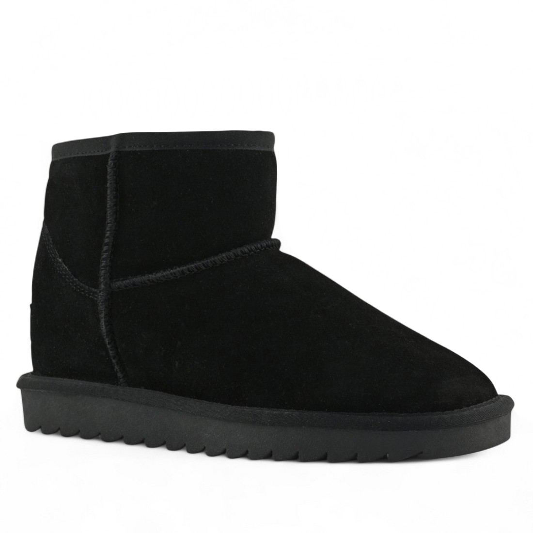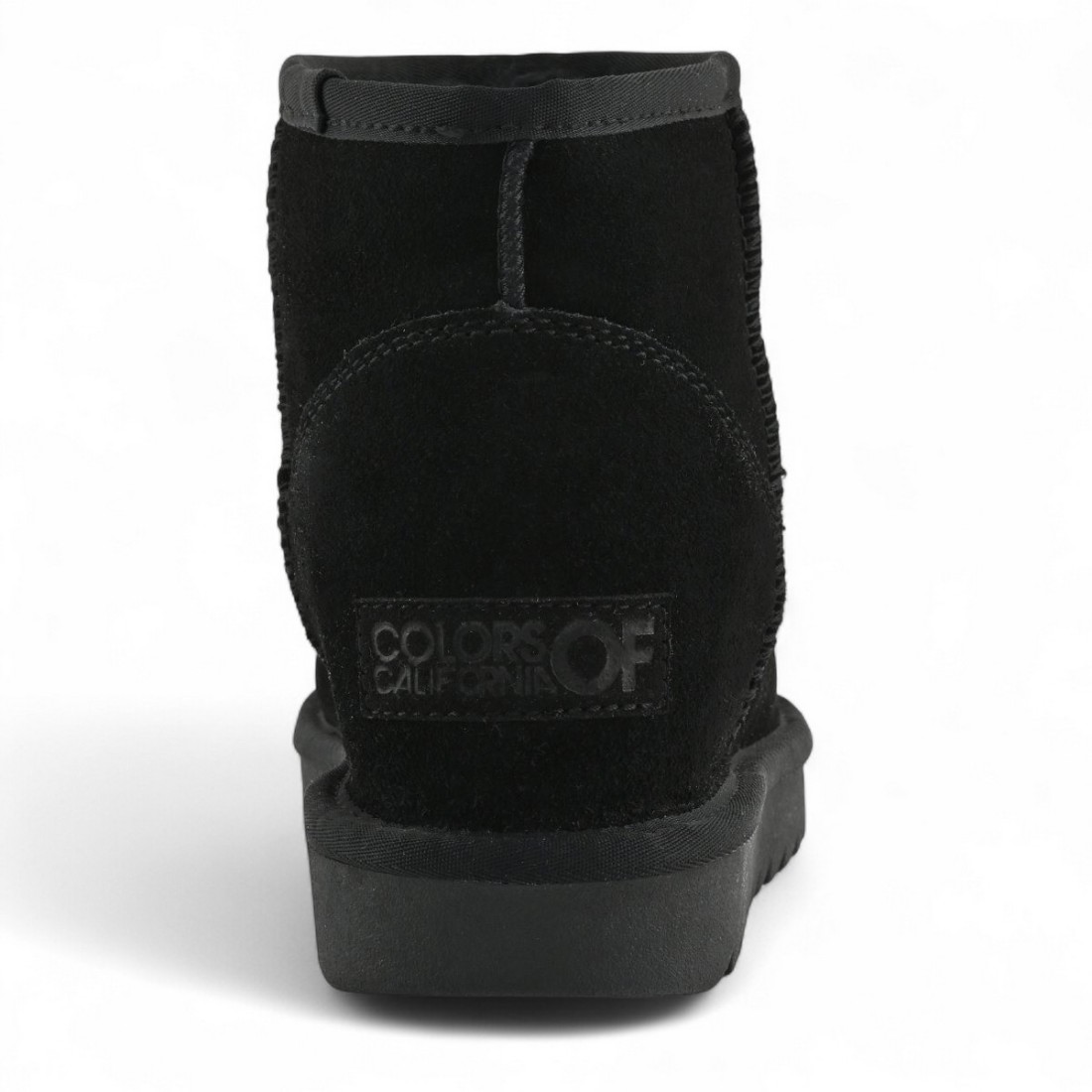 Stivaletti donna Colors of California in camoscio nero, dal design essenziale e contemporaneo. La tomaia morbida avvolge il piede, la fodera e la soletta in tessuto offrono comfort e traspirabilità, mentre la suola in gomma assicura stabilità. La zeppa di circa 2 cm dona slancio naturale. Perfetti per look casual o urbani, sono ideali per ogni occasione, dal lavoro al tempo libero.
