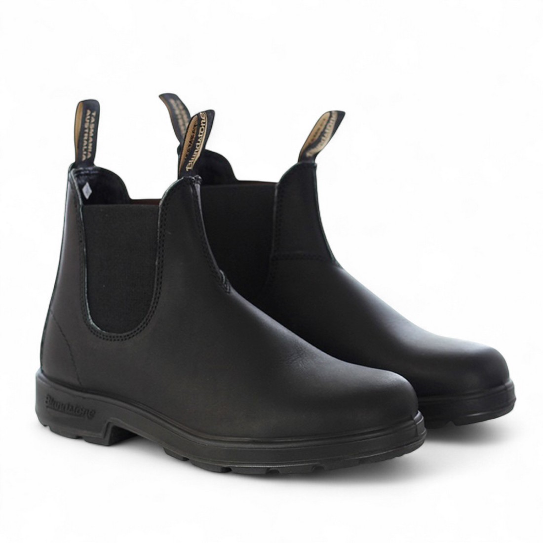 Stivaletti Chelsea Blundstone #510 della linea Originals, in pelle nera premium resistente alle intemperie. Presentano elastici laterali, tomaia liscia con impuntura frontale e linguette per una calzata facile. Suola in TPU dentata e antiscivolo con tallone rialzato per massima aderenza. Intersuola ammortizzata e sistema SPS Max Comfort per ridurre gli urti. Look grintoso e versatile, ideale per outfit casual e quotidiani.
