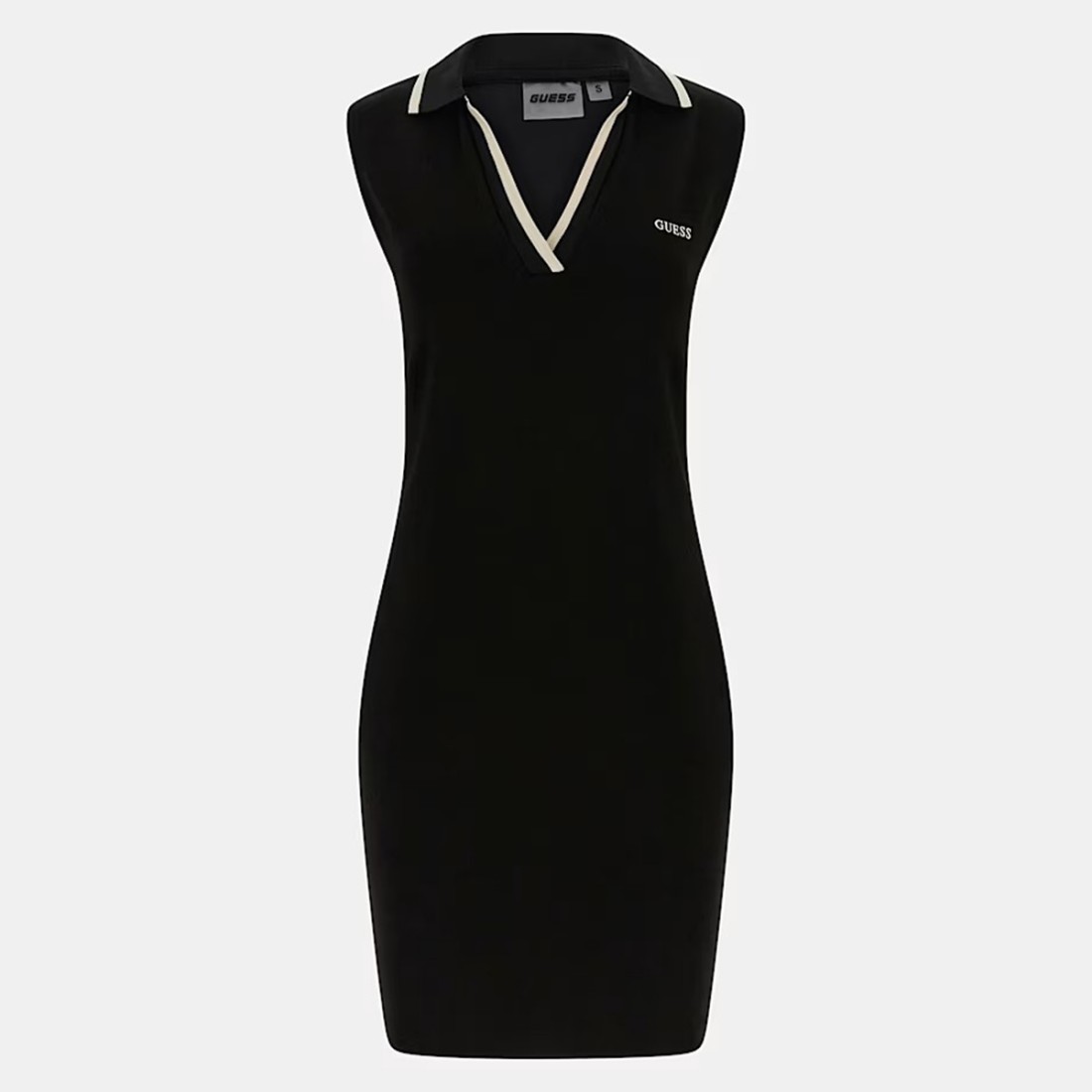 Scopri l’eleganza versatile di GUESS con questo abito giromanica nero in tessuto misto (50% poliestere, 17% cotone, 16% modal, 11% lyocell, 6% elastan). Lo scollo a V e il logo ricamato sul petto donano un tocco distintivo, mentre la vestibilità slim valorizza la silhouette con stile e comfort. Perfetto per occasioni casual e serate speciali.
