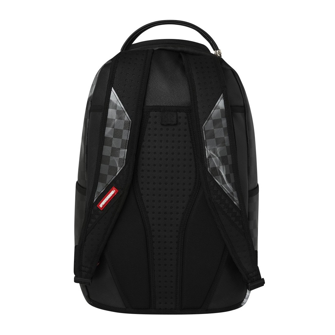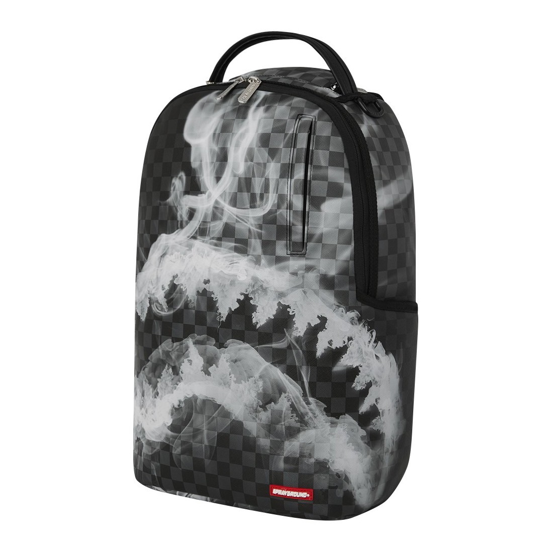 Zaino Sprayground in ecopelle grigia con stampa “Shark in Paris N’ Smoke” e logo frontale a contrasto color oro. Design deciso e funzionale, con spalline regolabili in tessuto e mesh traspirante, schienale imbottito in rete e chiusura con zip. Dotato di tasche laterali, tasca interna imbottita per laptop e scomparto separato in velour per occhiali. Badge “Sprayground Authentic” in gomma. Dimensioni 29 x 46 x 15 cm.