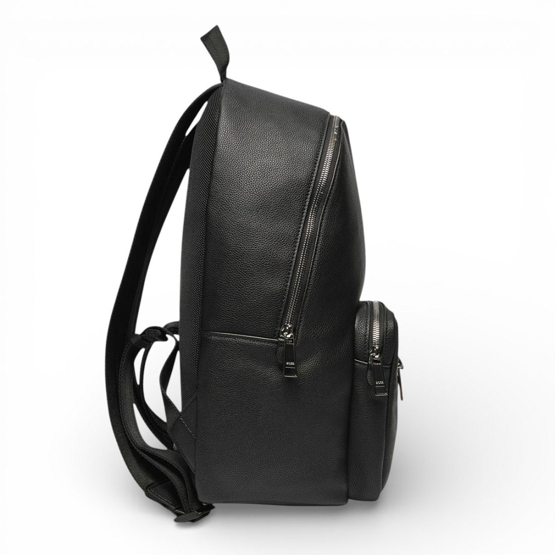 Zaino BOSS in pelle sintetica nera, perfetto per uno stile sofisticato e sostenibile grazie all'uso di materiali riciclati. Dotato di un ampio scomparto con chiusura a zip, tasca frontale con cerniera, due tasche interne scorrevoli e una con zip per una pratica organizzazione. Comfort garantito dalle spalline regolabili in tessuto e dall’imbottitura posteriore. Il manico corto offre una presa facile e sicura. Dimensioni 28x43x14 cm, ideale per ogni occasione.Il nostro servizio clienti è a tua disposizione dal Lunedì al Sabato dalle 10:00 alle 19:30.