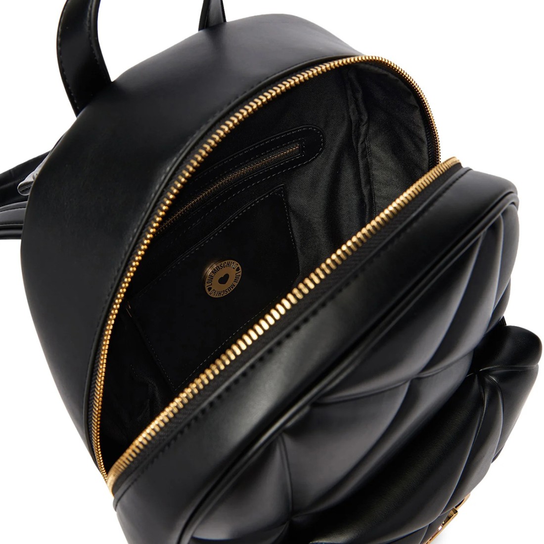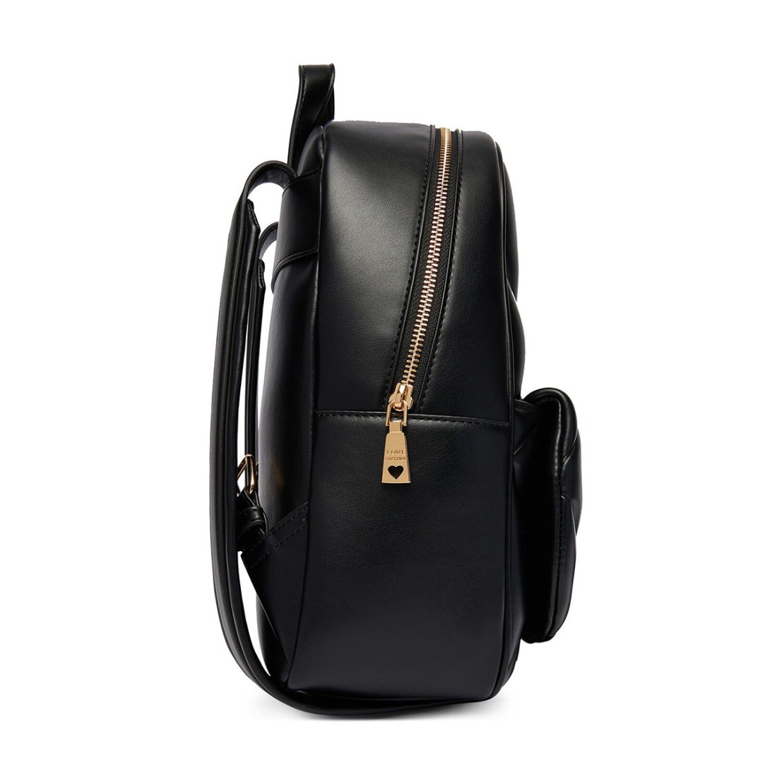 Zaino Love Moschino in ecopelle nera trapuntata, elegante e pratico per l’uso quotidiano. Il logo monogramma in metallo sul davanti aggiunge un tocco distintivo. Dotato di spalline regolabili in ecopelle per un comfort ottimale, presenta uno scomparto principale con chiusura a zip e una tasca frontale con bottone magnetico per avere tutto a portata di mano. Dimensioni: 25 x 33 x 11 cm.